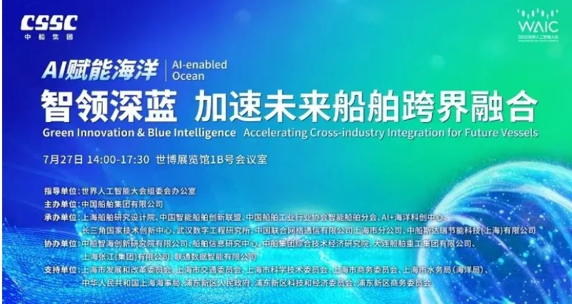 2025世界人工智能大会(WAIC2024) 将于7月26-29日在上海举办。27日下午,中国船舶集团有限公司将举办AI赋能海洋——智领深蓝,加速未来船舶跨界融合论坛。